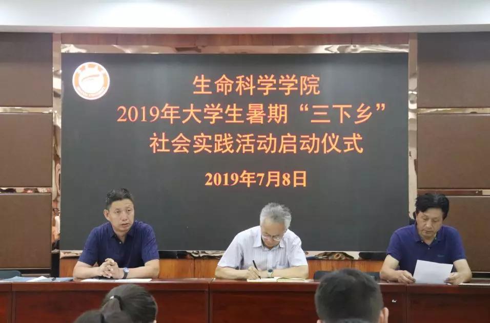 为引领教育广大青年学生在实践中切实感受新中国成立70周年取得的巨大成就,增强“四个意识”、坚定“四个自信”、做到“两个维护”,2019年7月8日,生命科学学院2019年大学生暑期“三下乡”社会实践活动启动仪式在文萃校区知本楼报告厅举行。院党委书记沈岩东,副书记叶志春、何彦平出席会议,各团队指导老师,团队成员参加了会议。