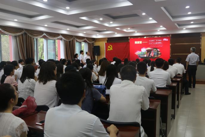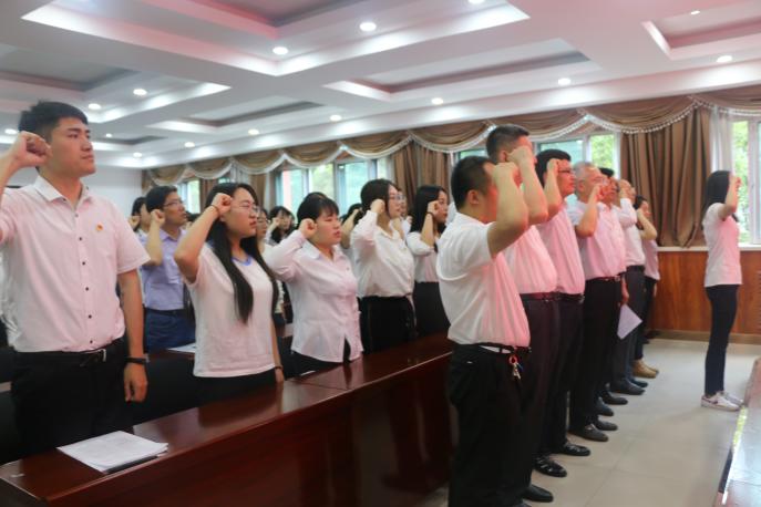 大会在嘹亮的国歌声中拉开帷幕,之后全体党员观看了“七·一”庆祝建党98周年的献礼短片《我宣誓--》,短片以“我宣誓”和“入党誓词”为主题主线,回顾我党近百年的风雨征程,表现了中国共产党人的铮铮誓言,也展现了一代又一代中国共产党人不忘初心、牢记使命的政治本色与无私奉献的高尚情操。