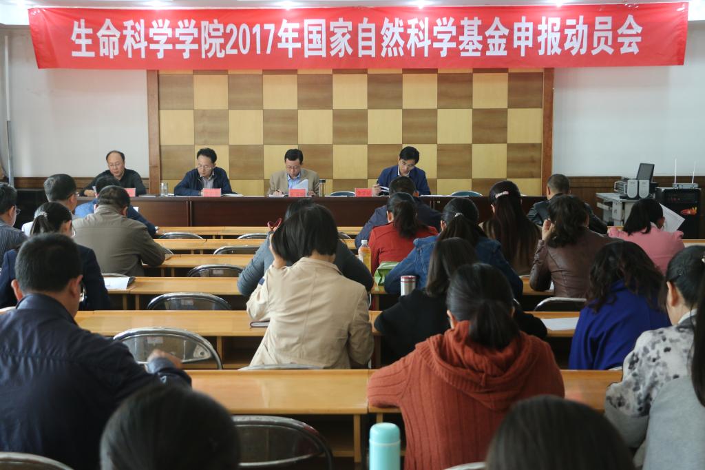 为了总结“十二五”期间国家自然科学基金项目申报工作经验,科学规划和合理安排2017年的申报工作,调动和激发广大教师申报国家自然科学基金项目的积极性,生命科学学院近期召开了“2017年国家自然科学基金项目申报动员会”。学校科技处李学斌处长应邀亲临动员会指导工作。生命科学学院党委沈岩东书记主持会议,学院全体教职工参加了会议。