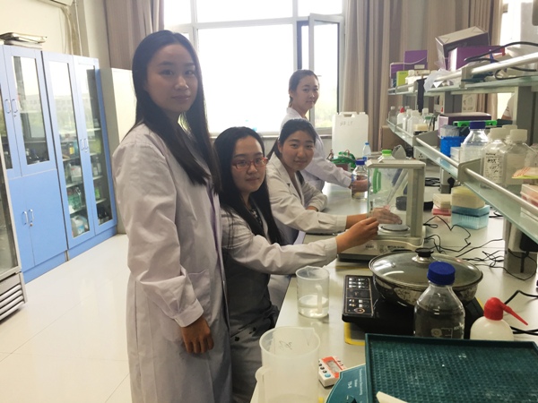 学霸在实验室做科研。从左至右依次为:王霏、肖静舒、于静、武珍珍
