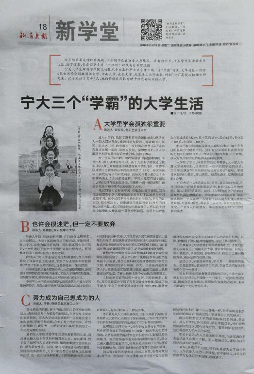 新消息报:宁大三个“学霸”的大学生活