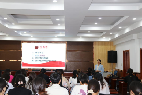 秦玉琦对纪律方面进行了强调。她指出人的生命只有一次,要从珍爱生命的角度出发做好安全工作,特别要注意实习中的交通安全、住房安全、网络安全、个人财务安全。