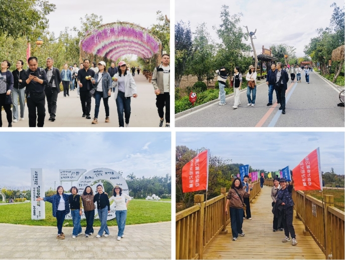 十月的秋色风景如画,老师们首先参观了生态园内的各个特色景点。园内植被丰富,色彩斑斓,大家漫步在林间小道,欣赏着秋天的美景,感受着大自然的宁静与和谐。在参观过程中,植物学老师们还将理论教学与实践相结合,教授大家识别生态园内的各类植物和果实,使大家在放松身心的同时又增长了植物学知识,对建设美丽新宁夏、实施乡村振兴战略有了更深的体会。
