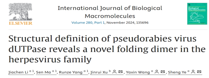 2024年9月17日,宁夏大学徐金瑞、天津大学王亚鑫及叶升共同通讯在International Journal of Biological Macromolecules(一区TOP)上在线发表题为“Structural definition of pseudorabies virus dUTPase reveals a novel folding dimer in the herpesvirus family”的研究论文。