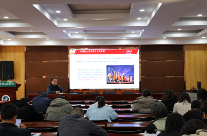 教职工政治理论学习会上,邓光存书记围绕民族宗教政策法规进行专题宣讲,他强调全体教师要以宪法日宣传活动为契机,更加自觉地恪守宪法原则,弘扬宪法精神,履行宪法使命,要牢固树立正确的马克思主义宗教观、遵守党的民族宗教和法律法规,要正确认识国家法律在保障人民权益、维护社会稳定和推动国家治理现代化进程中的基石作用。