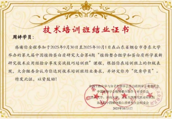 参会同学纷纷表示,此次大会拓宽了学术视野,启发了研究思路。周婷谈到未来将继续在植物蛋白质功能研究领域深入探索,加强与同行学者的交流与合作,努力取得更多高质量的科研成果;颜子怡认为,交流中收获的建议对完善科研工作具有重要意义。此次参会不仅加强了团队与国内顶尖科研团队的联系,也展现了学院学子的科研实力与学术风采。