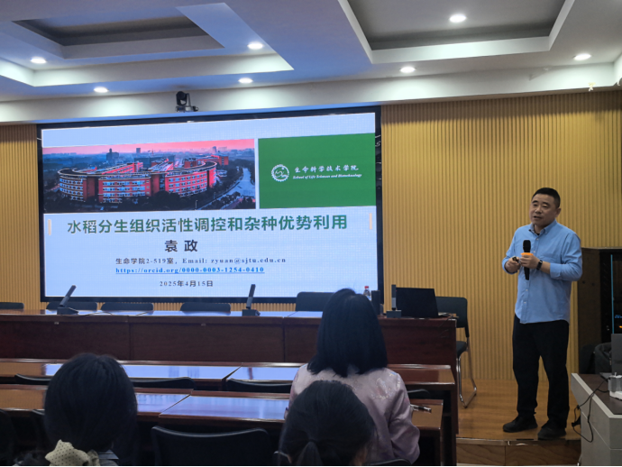 2025年4月15日,上海交通大学生命科学技术学院袁政教授应邀为生命科学学院师生作了题为“水稻分生组织活性调控和杂种势利用”的学术报告,报告会由生命科学学院副院长李敏主持。