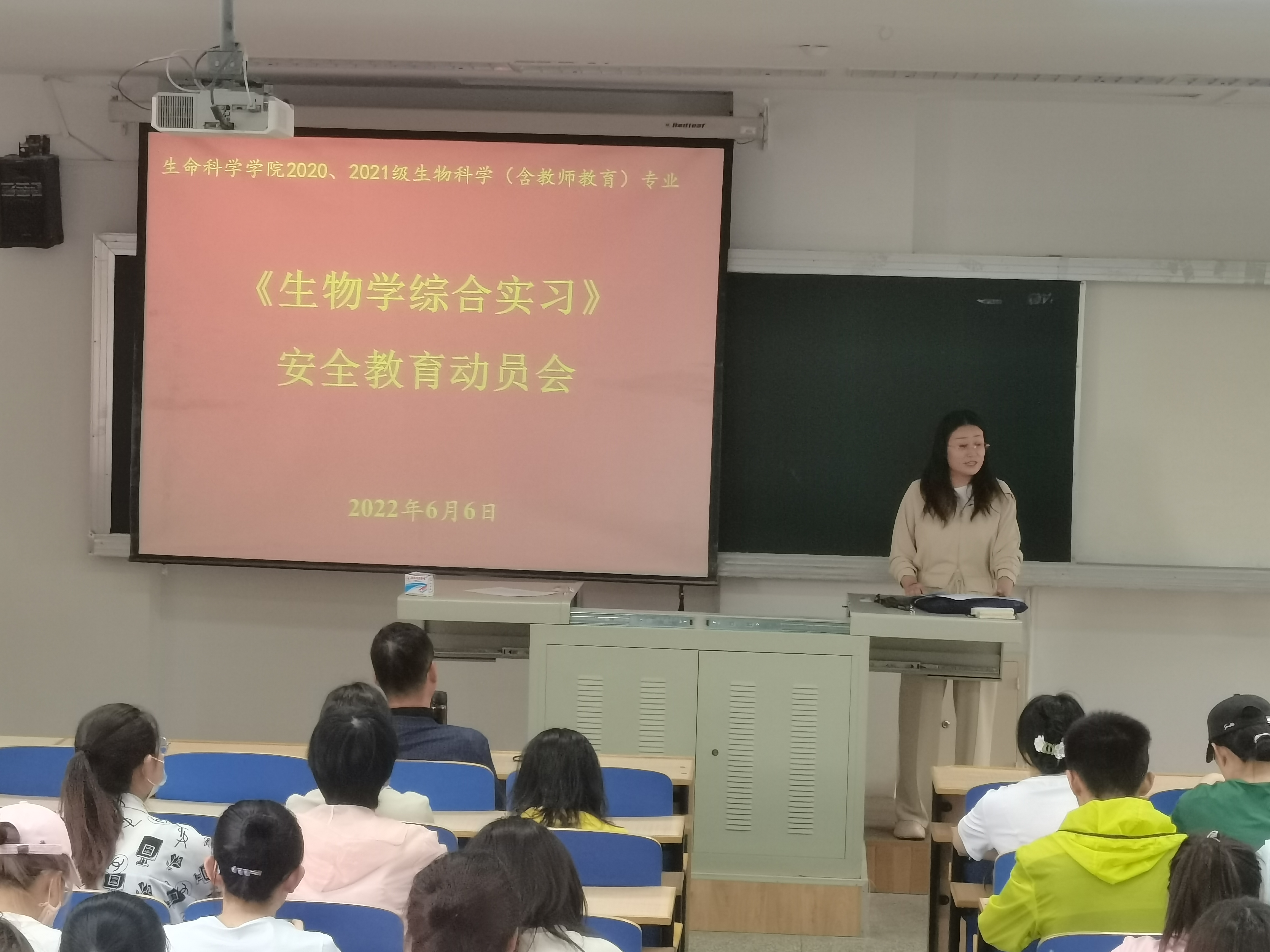 根据教学工作安排,20级生物科学(教师教育)生物科学专业38名学生21级生物科学(师范)专业39名学生将于6月6日-16日开展为期10天的生物学综合实习。通过这次会议,同学们普遍此次实习有了更深入的认识,进一步强化纪律观念,端正了实习态度,明确了实习目标和任务,为顺利完成生物学综合实习打牢了基础。