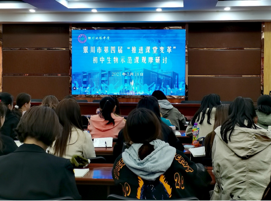 2021年3月18日下午,betway必威官方网站师范教育教研室组织2018级生物科学(教师教育)专业学生观摩了“银川市第四届‘推进课堂变革’初中生物示范课观摩研讨”活动。观摩分两组进行,一组同学到银川二中北塔分校进行现场观摩,另一组同学在宁夏大学文萃校区知本楼报告厅观摩网络直播。
