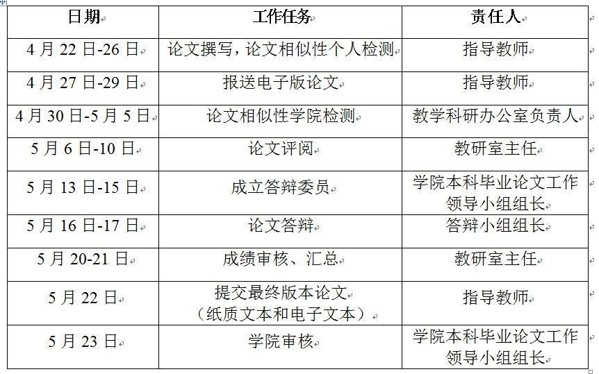 请各相关单位及责任人严格按照日程安排组织各项工作,保证学院2019届本科生毕业论文答辩工作顺利进行。