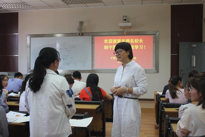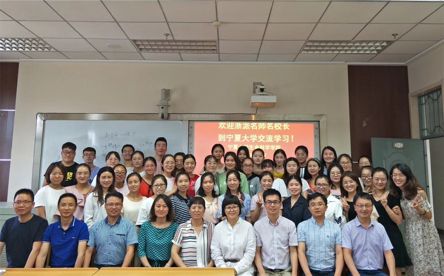 2018年6月29日上午,betway必威官方网站师范教育教研室的教师及生物科学(教师教育)专业2015级学生与来自浙江省“浙派名师名校长培养工程——初中科学名师班”的教学名师在贺兰山校区微格教室进行了交流学习。