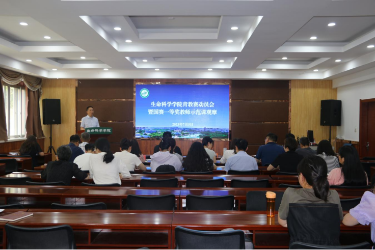 为深入学习贯彻党的二十大精神,加强师德师风建设,提升青年教师的教学能力和业务水平,7月6日下午生命科学学院青教赛动员会暨国赛一等奖教师示范观摩课在知本楼二楼报告厅召开。学院院长苏建宇、副院长李乐出席会议,农学院王彬教授应邀参会,青教赛全体参赛教师及其他专任教师参加会议,会议由苏建宇主持。
