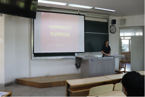 6月7日,生命科学学院在文萃一教131举行《生物学综合实习》安全教育动员会,旨在调动同学们对实习的积极性、增强同学们的安全意识。生命科学学院副院长李乐出席本次活动,学院指导教师张大治、杨涓、杨文治、书院专职辅导员秦玉琦和2021级生物科学班、2022级生物科学(师范)班全体学生参加本次动员会。活动由牛东玲老师主持。