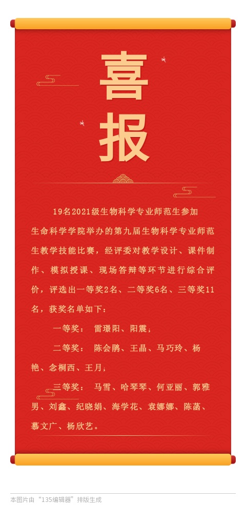 第九届生物科学专业师范生教学技能比赛获奖名单