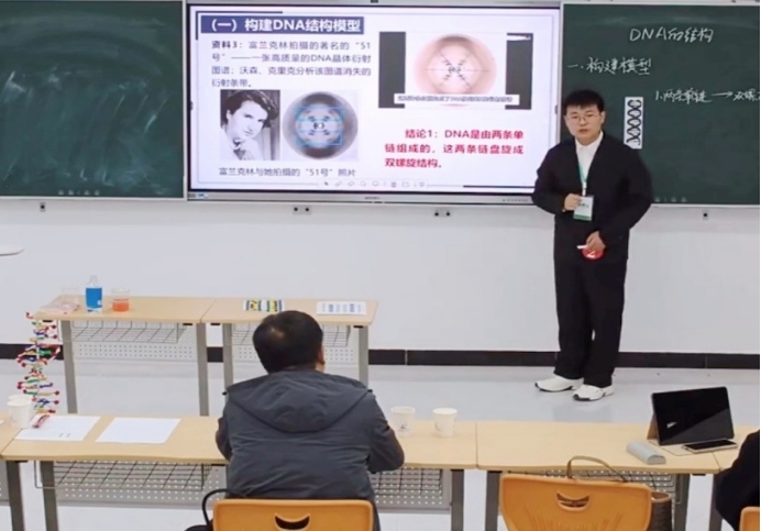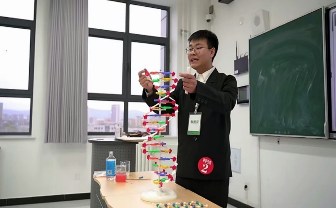阳震同学以高中生物学必修二教材中“DNA分子的结构”一节为教学内容,凭借扎实的专业知识、先进的新课程理念、自信从容的教态、多元化的教学方法,在激烈的竞争中脱颖而出,体现出betway必威官方网站在师范生培养过程中扎实的工作作风,展现了betway必威官方网站师范生积极向上、追求卓越的良好精神风貌。