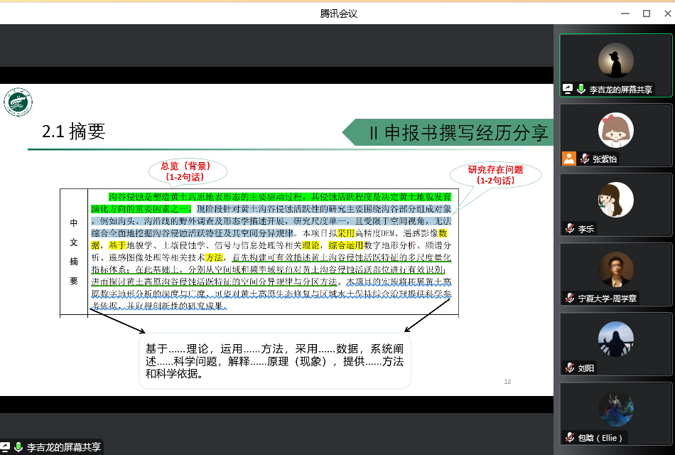 接着,去年申报但未获批青年基金项目师,将去年申报书的评审意见和撰写内容进行详细讲解,大家就存在的问题提出了合理的建议和修改方案